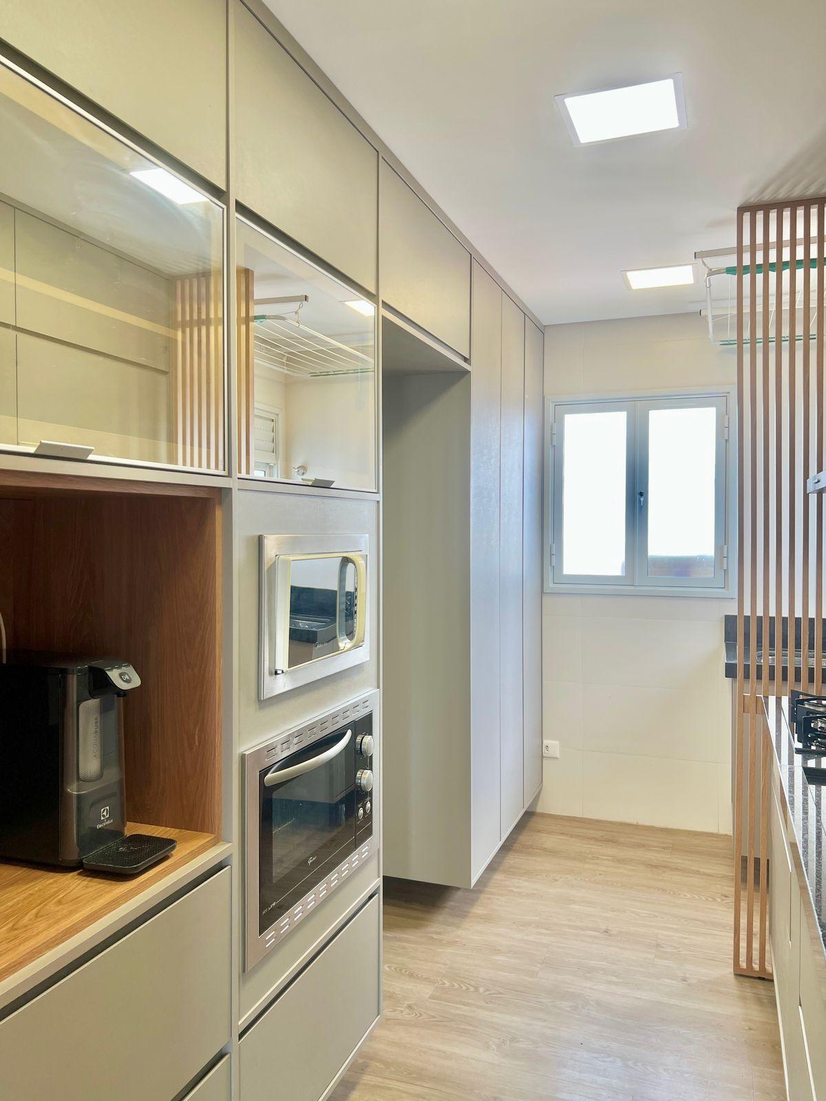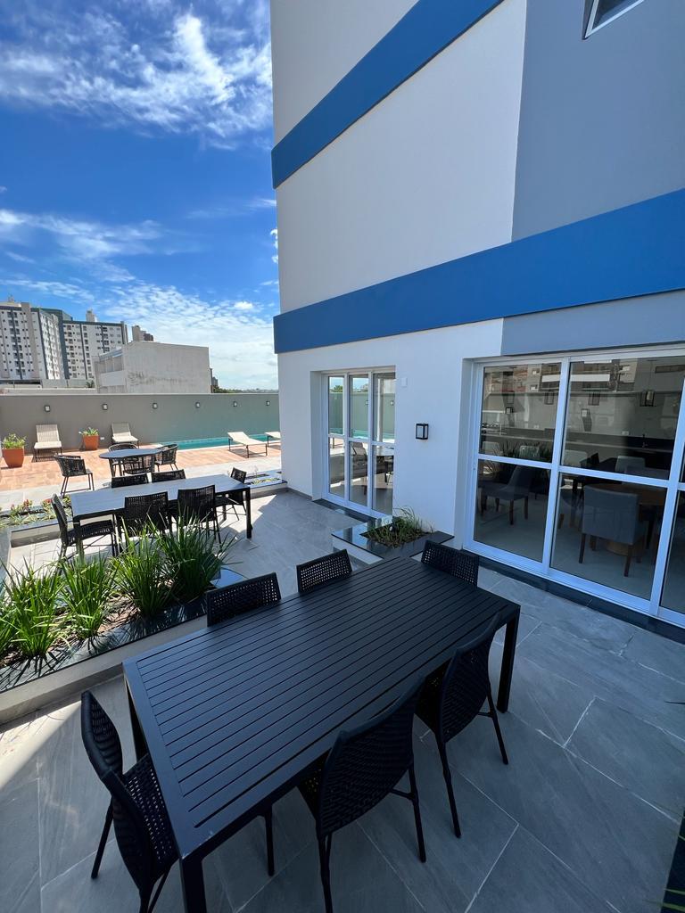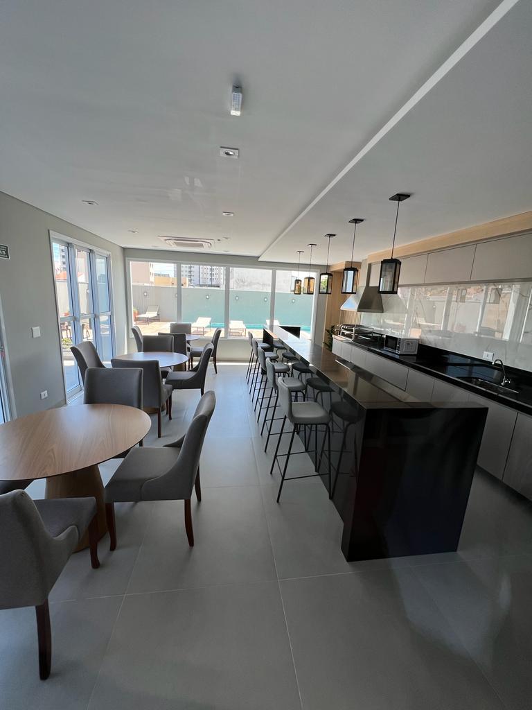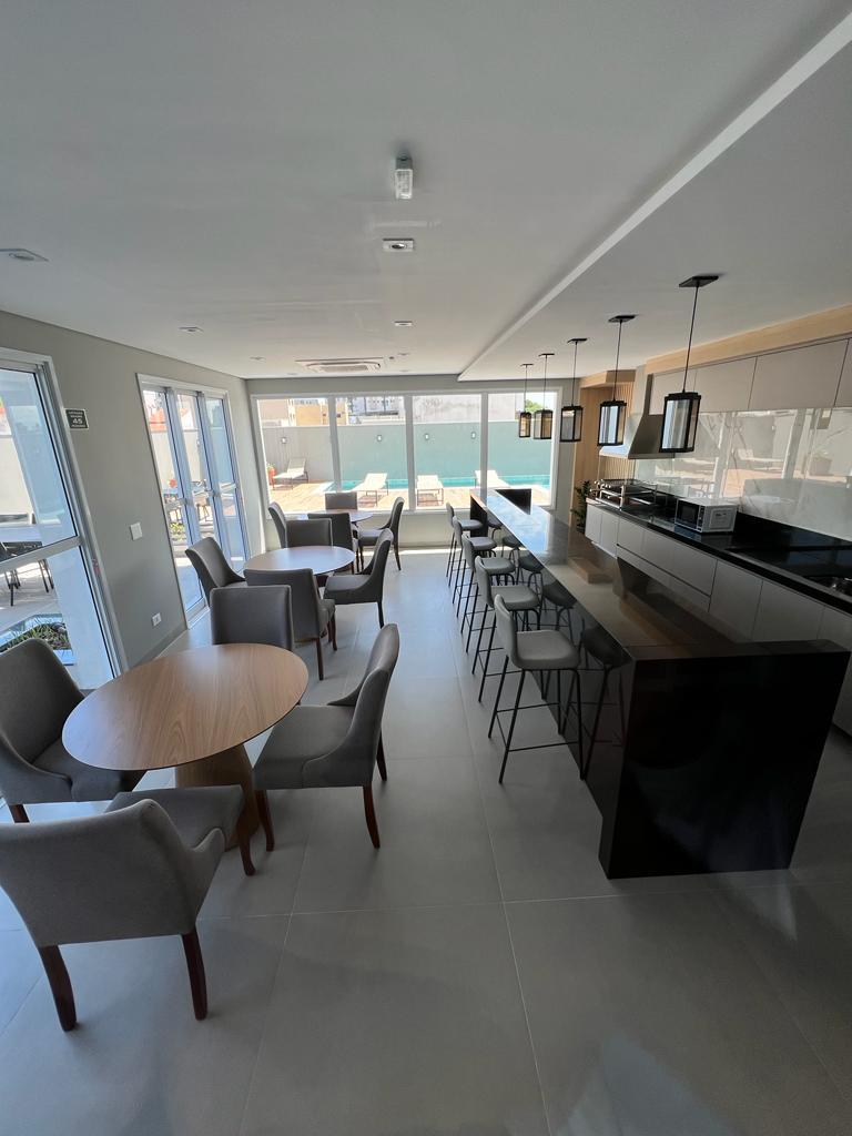 São 96m2 de área interna e o possui 03 dormitórios sendo 01 suíte, todos completos em planejados e com ar condicionado, banheiro social também com planejados, sala em 02 ambientes com ar condicionado, lavabo com marcenaria, cozinha completa (planejados, cooktop, forno e microondas), sacada gourmet com armários, fechada em vidro e com vista para Parque do Povo.